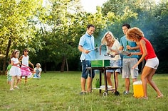 Man and child disappear, Flag disappears, Extra head by flag disappears, Woman in red Shirt changes, Children change, People shift